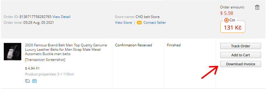 55. Kde nájdem faktúru na tovar z Aliexpress?